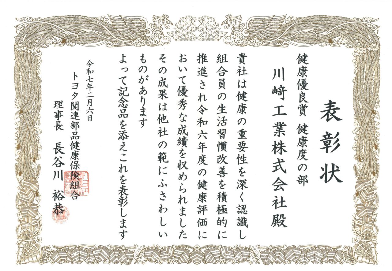このたびトヨタ関連部品健康保険組合様より、健康優良賞 健康度の部 を受賞しました。