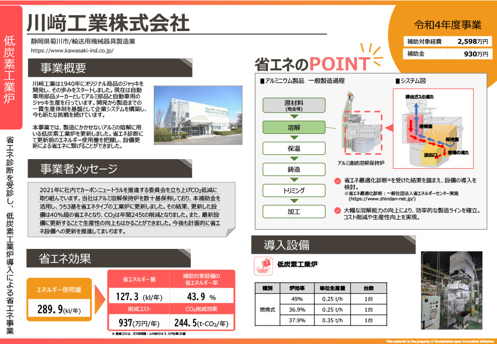 この度、当社のエネルギー効率向上への取り組みが、一般社団法人 環境共創イニシアチブ(SII)に「省エネ事例」として掲載されました。